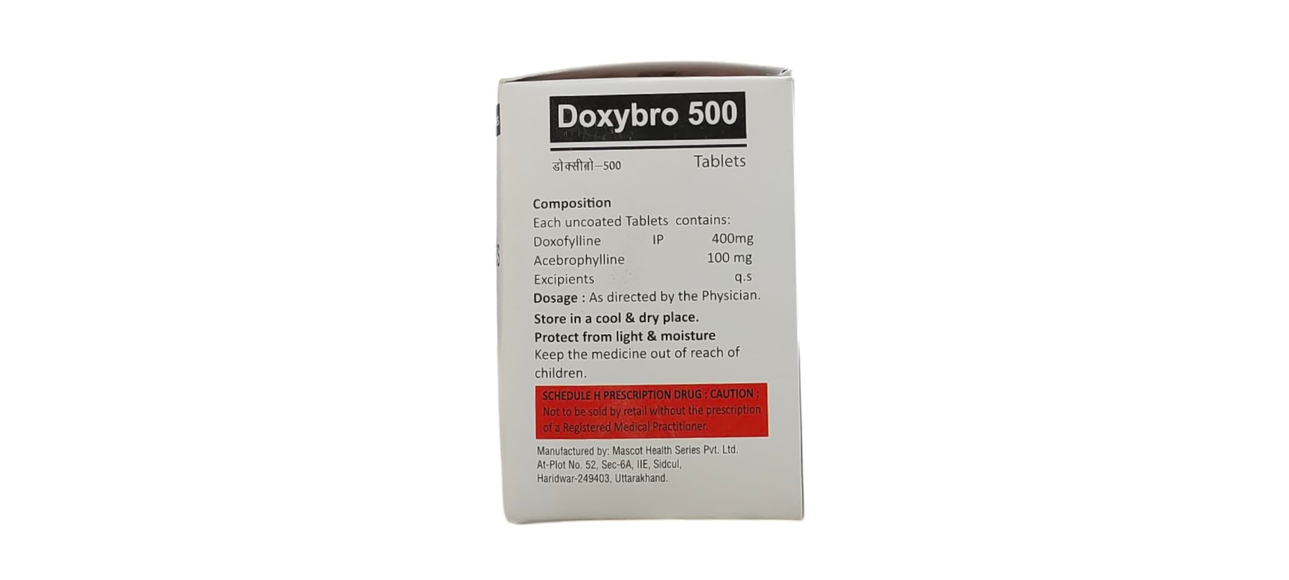 Doxy Bro 500 is a dual-action respiratory therapy combining Doxofylline, a novel xanthine derivative with bronchodilator activity, and Acebrophylline, a mucolytic and anti-inflammatory agent. Together, they provide comprehensive relief in patients suffering from asthma, COPD, and other obstructive airway diseases by: