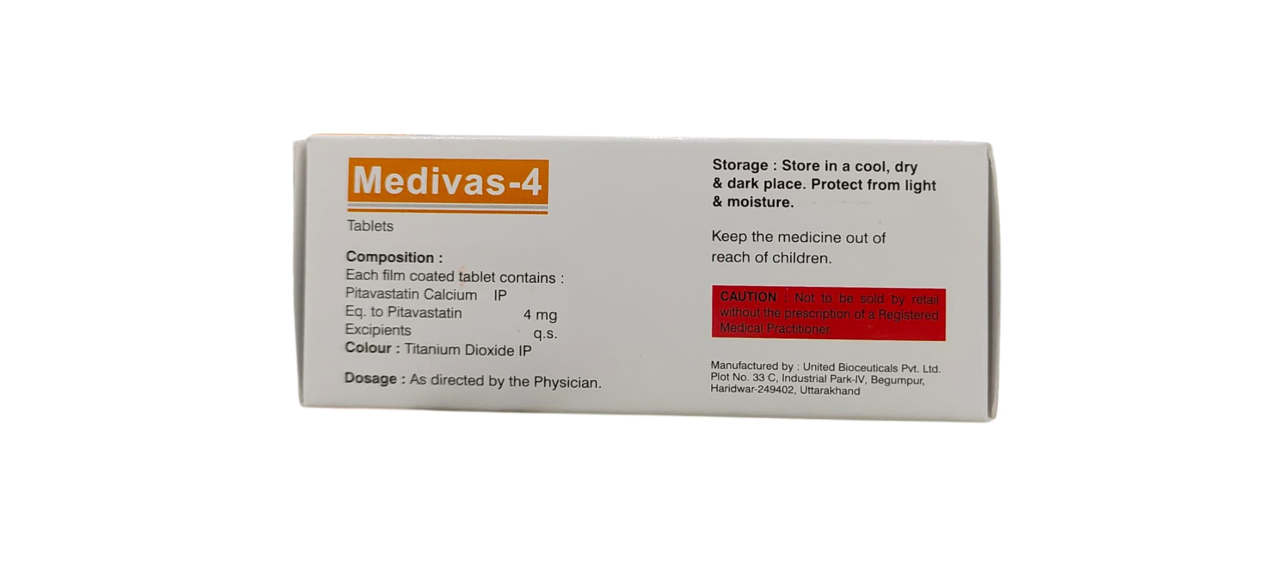 Medivas 4 is a lipid-lowering medication used to manage dyslipidemia and reduce the risk of cardiovascular events. It contains Pitavastatin, a potent HMG-CoA reductase inhibitor (statin), which reduces LDL cholesterol, total cholesterol, and triglycerides, while modestly increasing HDL cholesterol.