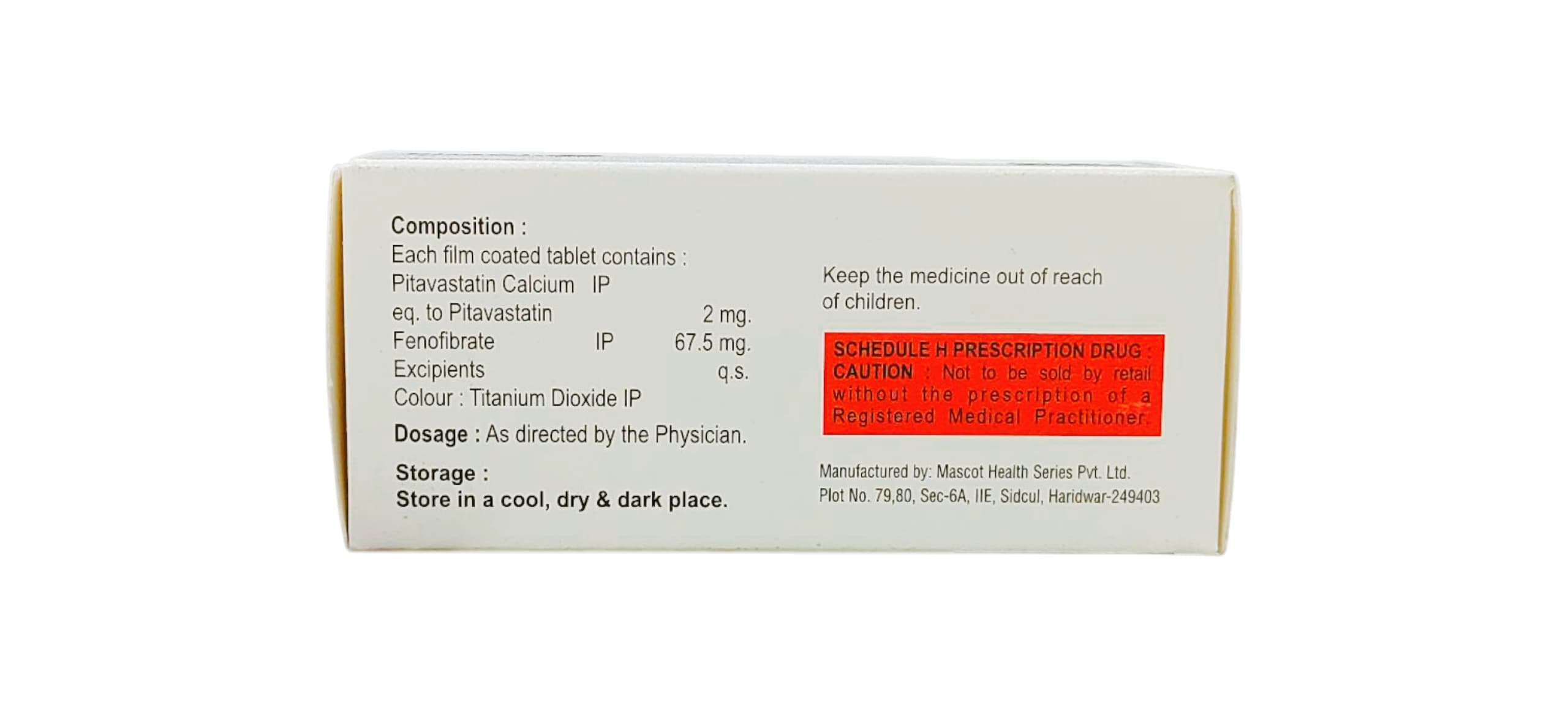 Pitawin F is a powerful dual lipid-modifying therapy that combines Pitavastatin, a modern and insulin-friendly statin, with Fenofibrate, a PPAR-α agonist that targets triglycerides. This combination provides comprehensive control of mixed dyslipidemia, especially in patients with high cardiovascular risk and atherogenic lipid profiles.